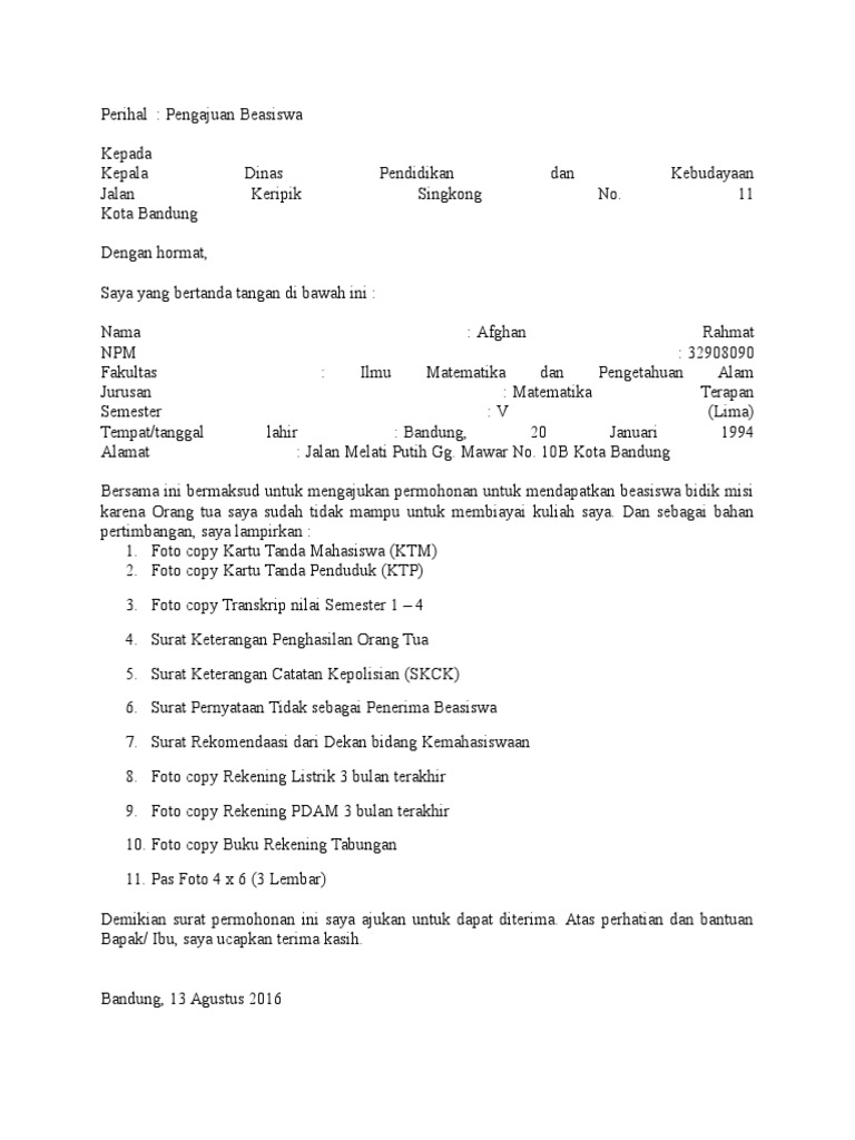 25+ Contoh Surat Permohonan Beasiswa Terlengkap - Contoh Surat