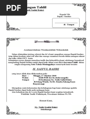 DOC) Contoh Surat Undangan Tahlil 40, 100, 1000 hari | Teja Sukmana - Academia.edu