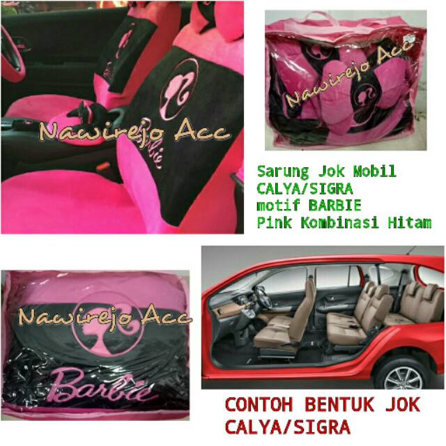 Sarung Jok Mobil Full Set CALYA/SIGRA 3 Baris Motif BARBIE Pink Kombinasi Hitam | Shopee Indonesia