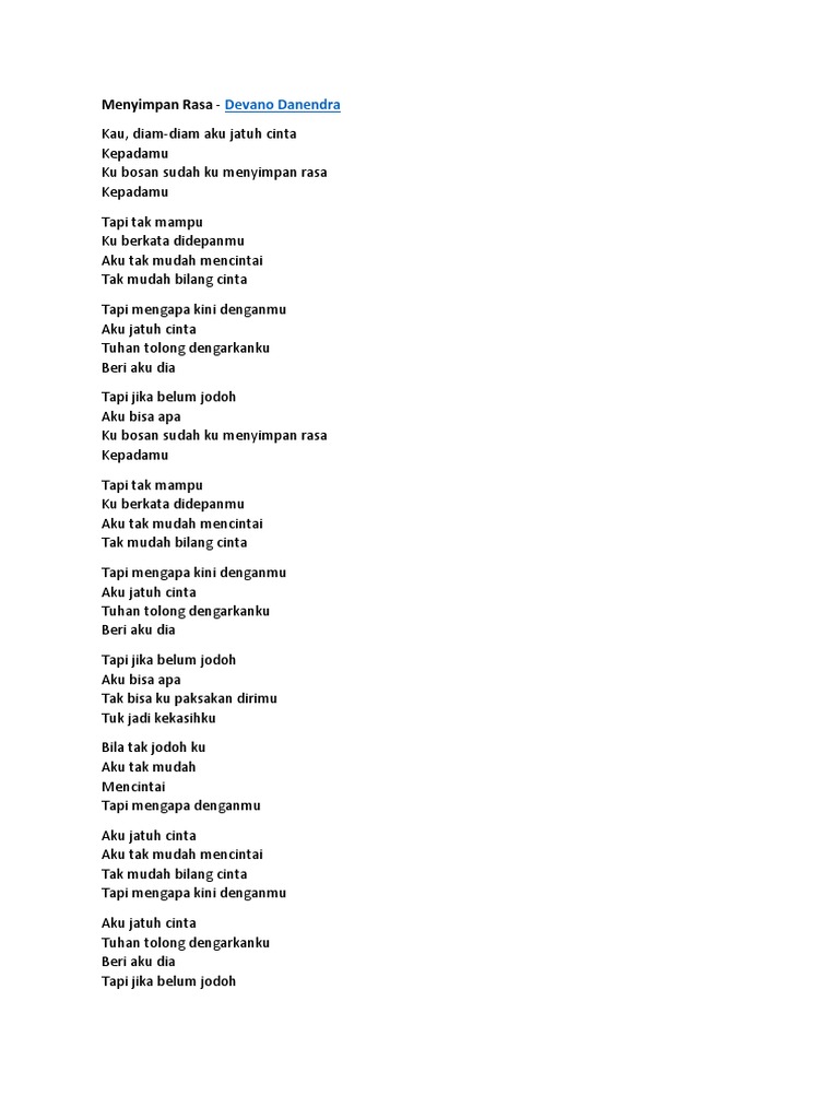 LIRIK LAGU TERBARU~ - Menyimpan rasa (Devano danendra) - Wattpad