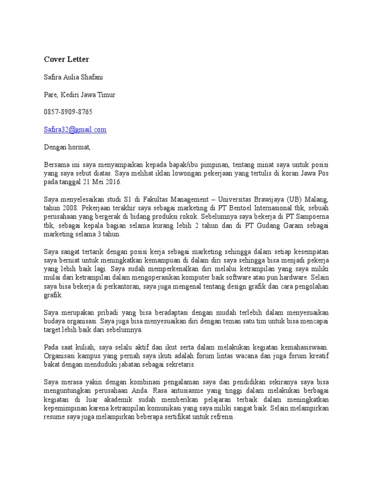 Contoh Cover Letter Simple Untuk Fresh Graduate Dalam Bahasa Melayu