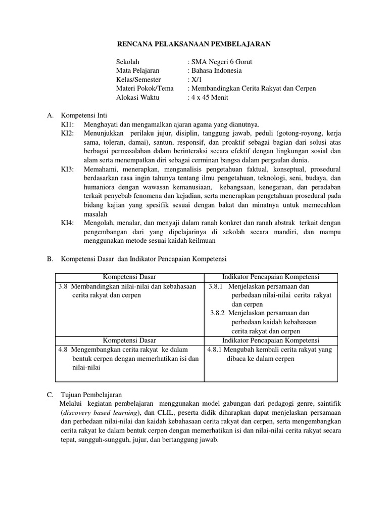 DOC) RPP BAHASA INDONESIA KLS X KD 3.8 DAN 4. | Putri Arum …