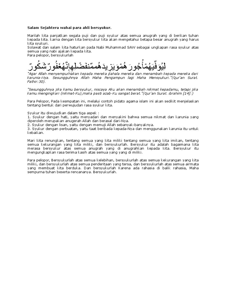 Berikut Contoh Naskah Pidato Agama Islam Tentang Bagaimana Cara Bersyukur - [PDF Document]