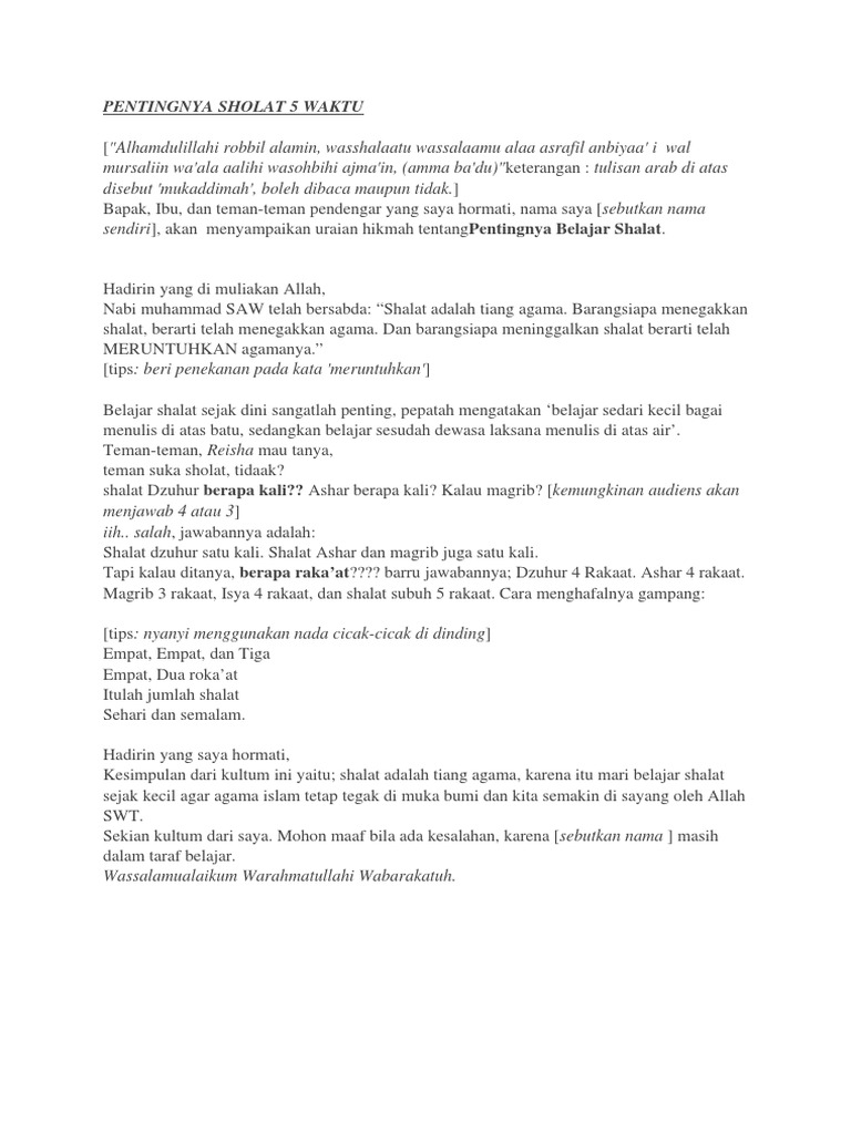Sholat Pidato Singkat Tentang Agama