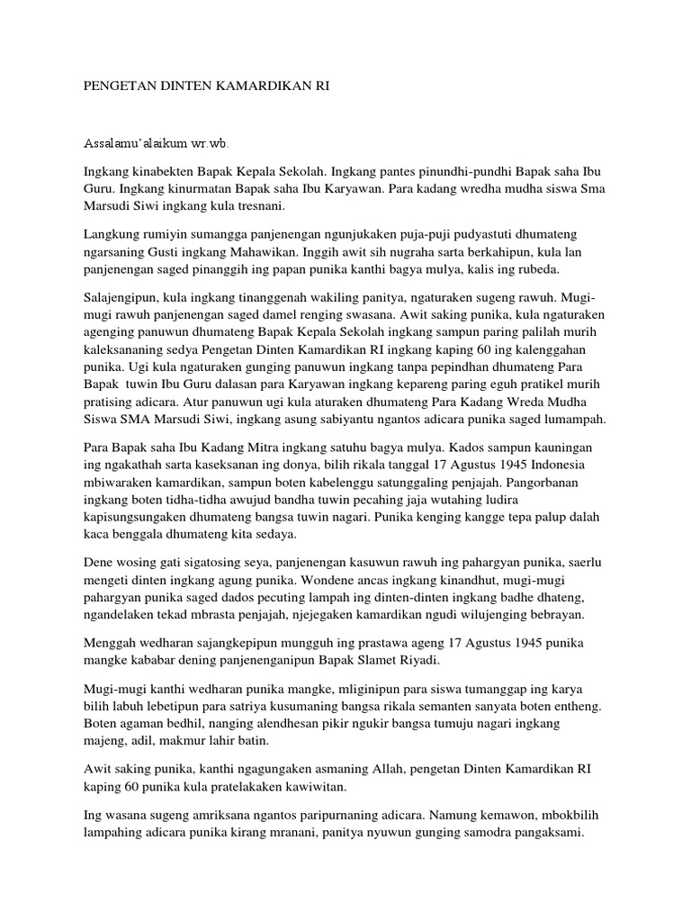 Pidato 17 Agustus Dalam Bahasa Jawa - Sragen A