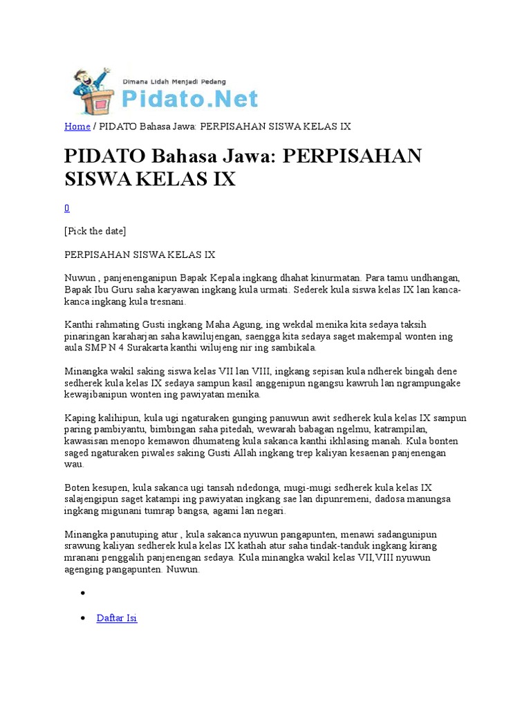 Contoh Pidato Bahasa Jawa Tentang Perpisahan | Contoh Soal Dan …
