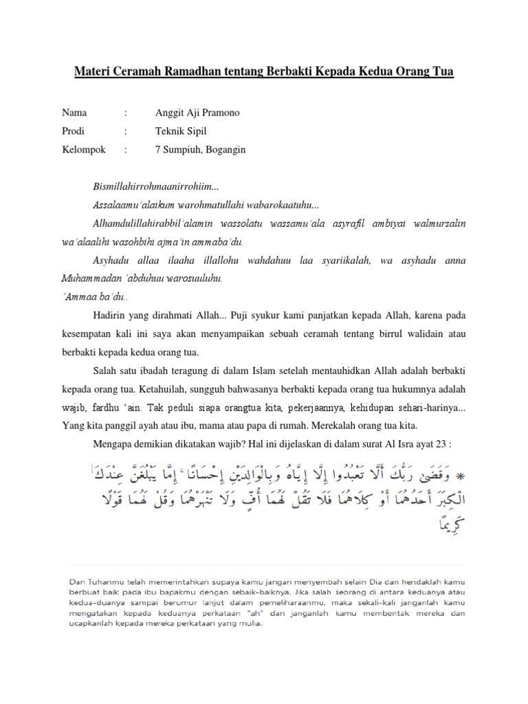 DOC) Pidato Bahasa Indonesia Ceramah " BERBAKTI KEPADA ORANG TUA'' | fikri zikri - Academia.edu