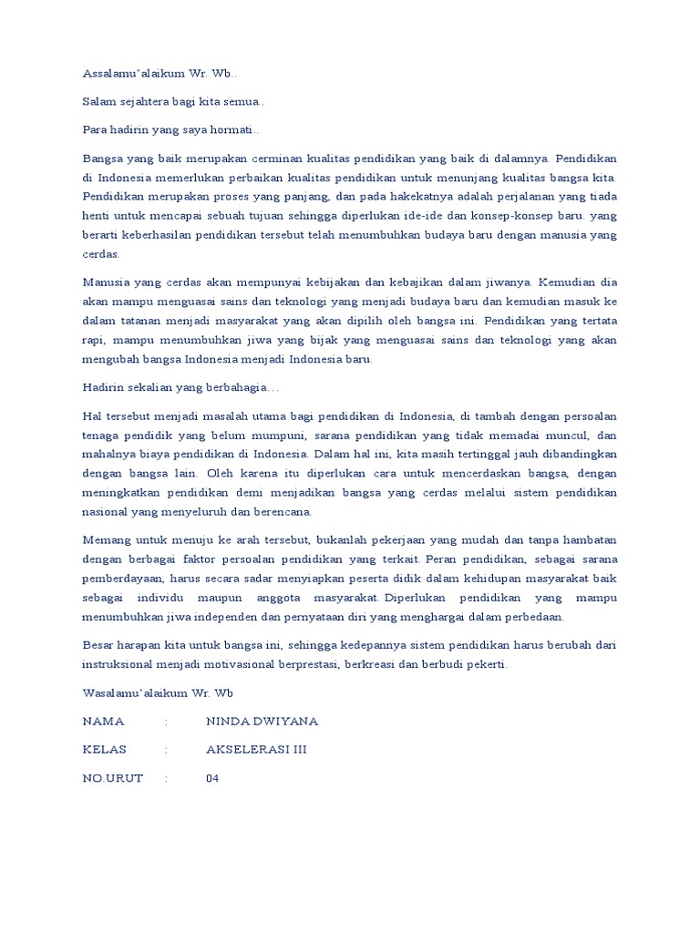 DOC) Contoh Pidato Singkat Pendidikan | indah mokobombang …