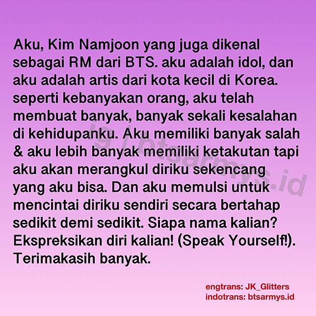 Pidato rm BTS di PBB Unicef (Dengan gambar) | Mencintai diri sendiri, Kutipan, Cinta sejati