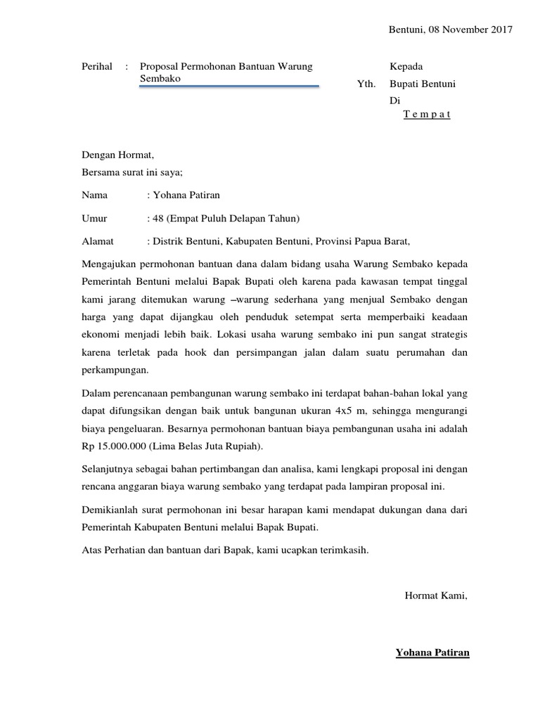 Contoh Proposal Permohonan Modal Usaha Kios Kelontong - Cute766
