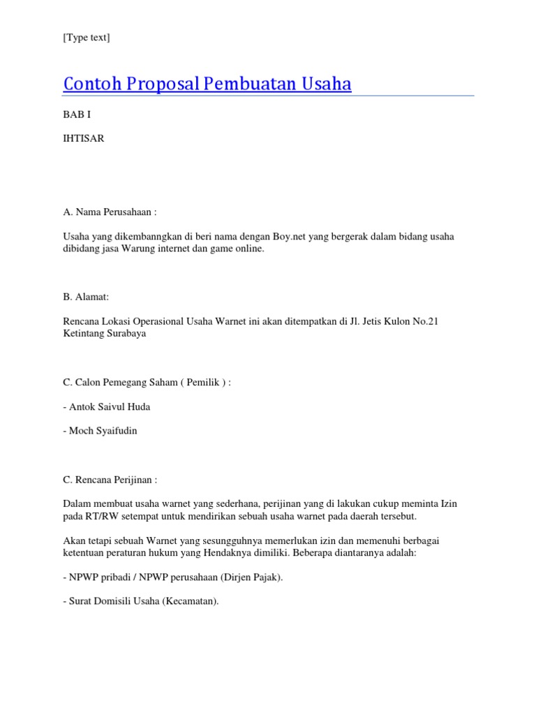 Contoh Proposal Izin Usaha Proposal Usaha