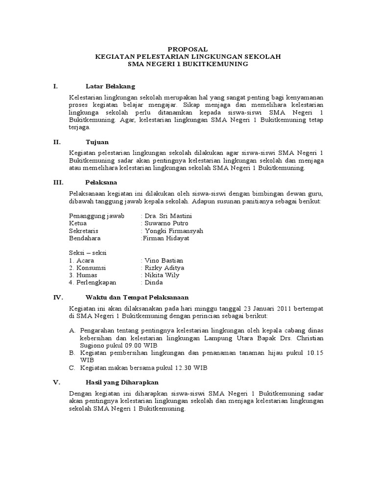 Contoh Proposal Tentang Kebersihan Lingkungan Sekolah - Barisan Contoh