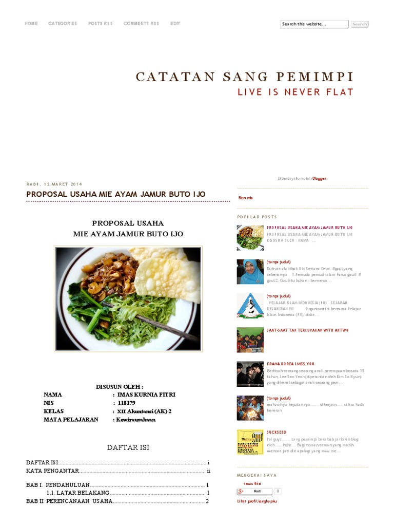 catatan sang pemimpi: PROPOSAL USAHA MIE AYAM JAMUR BUTO IJO