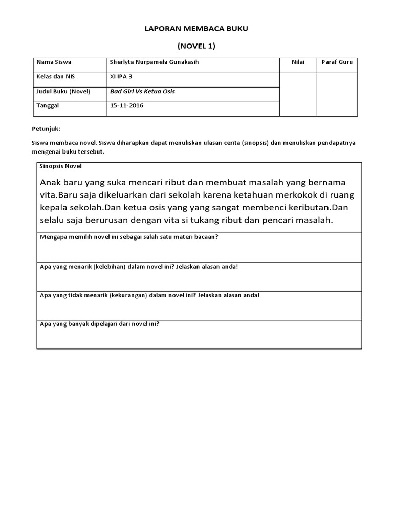 Contoh Resensi Novel Bad Girl Vs Ketua Osis - Barisan Contoh