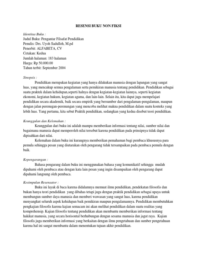DOC) CONTOH RESENSI BUKU PENGANTAR FILSAFAT PENDIDIKAN | Gustiandra Lesmana - Academia.edu