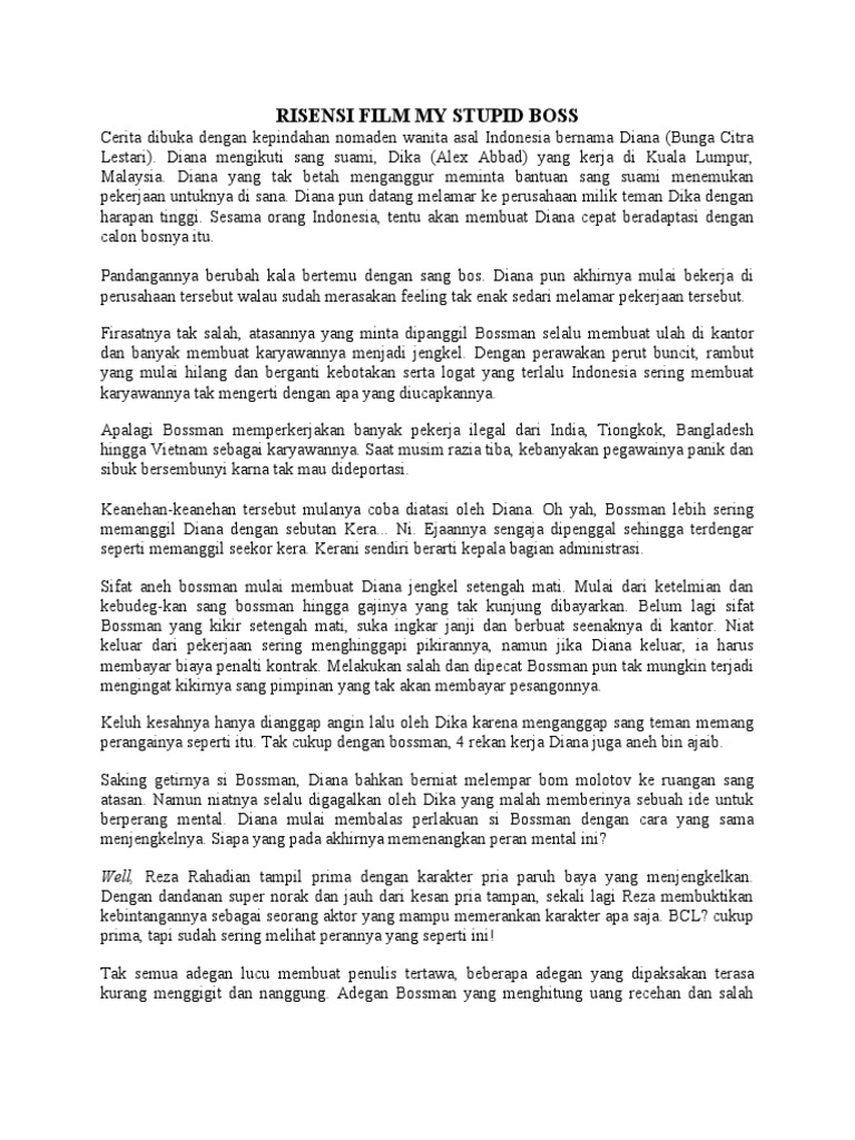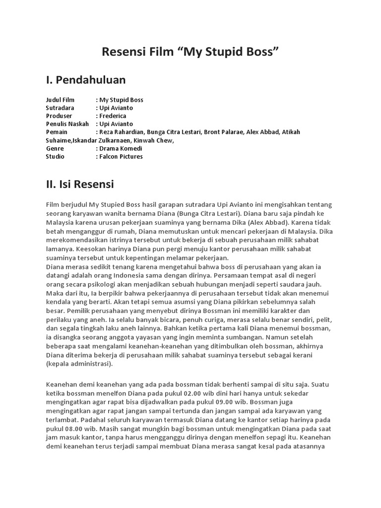 RESENSI FILM.docx - RESENSI FILM MY STUPID BOSS I Identitas Film Judul Film My Stupid Boss Sutradara Upi Avianto Produser Frederica Penulis Naskah Upi | Course Hero