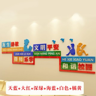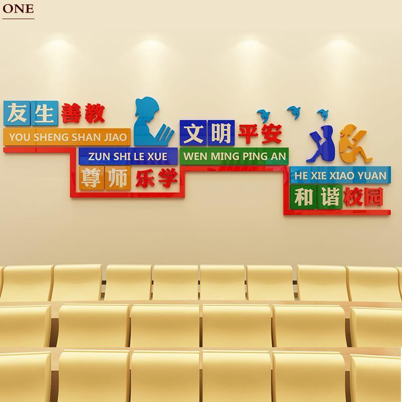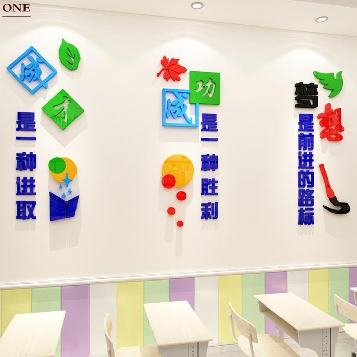 QT-Tata ruang kelas slogan dekoratif peradaban stiker dinding akrilik, 3D stereo konstruksi budaya sekolah SMP | Shopee Indonesia