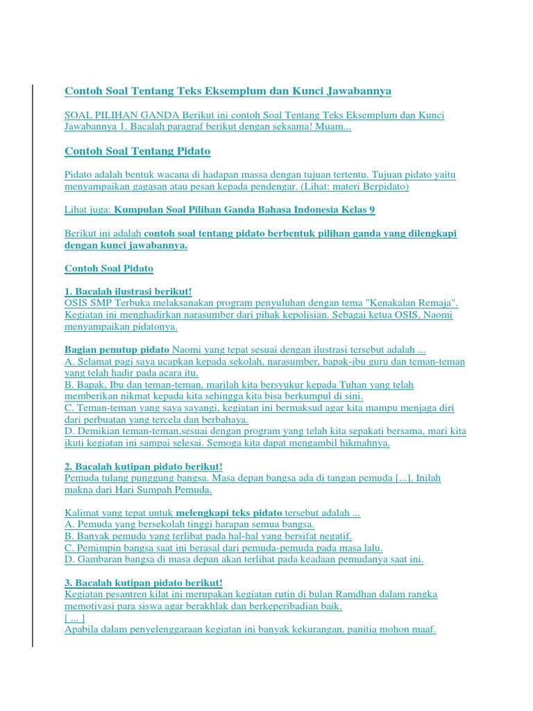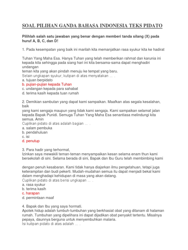 Soal Pilihan Ganda Bahasa Indonesia Teks Pidato