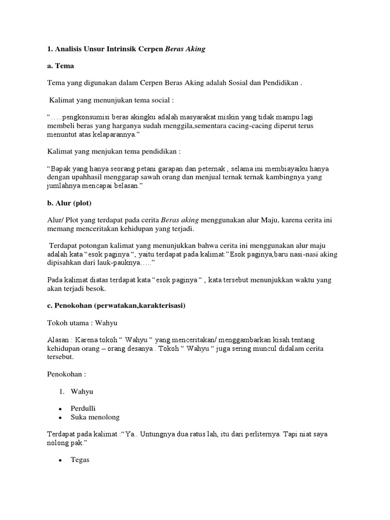 Analisis Intrinsik n Eks Cerpen Beras Aking