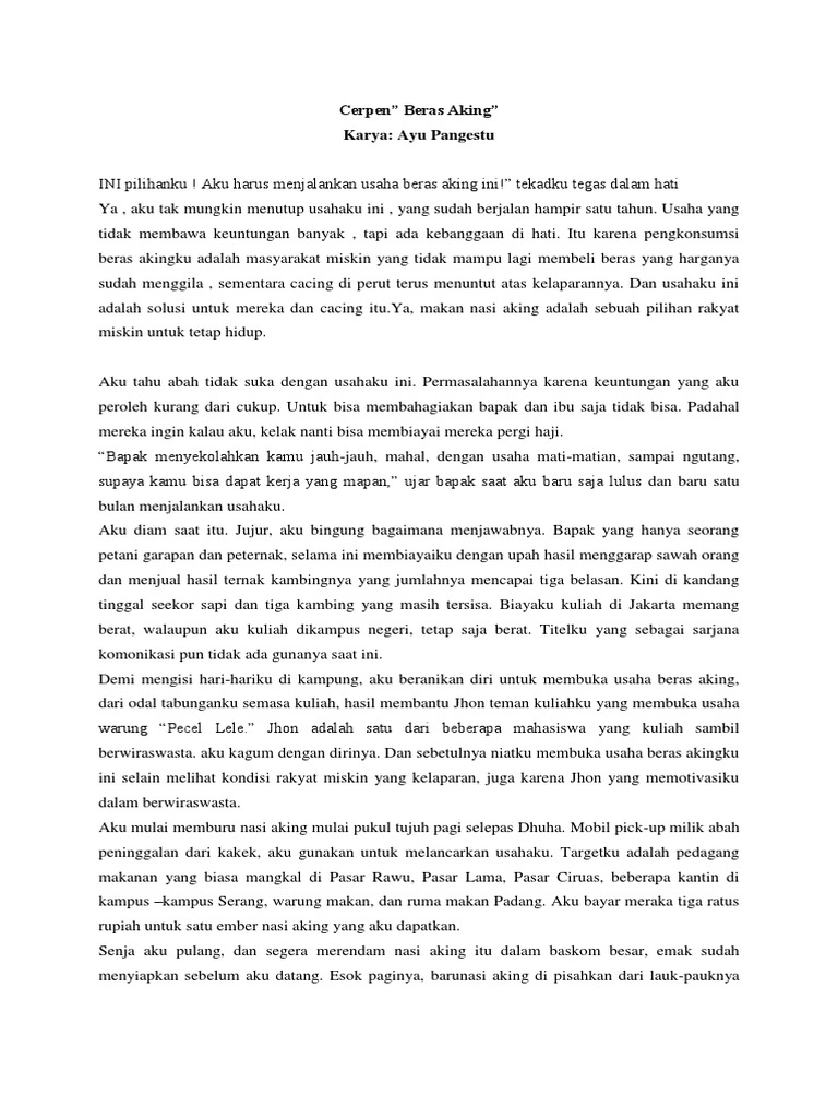 Analisis Unsur Intrinsik dan Ekstrinsik ‘Beras Aking’ Cerpen Karya Ayu Pangestu - Pusat Ilmu Pengetahuan